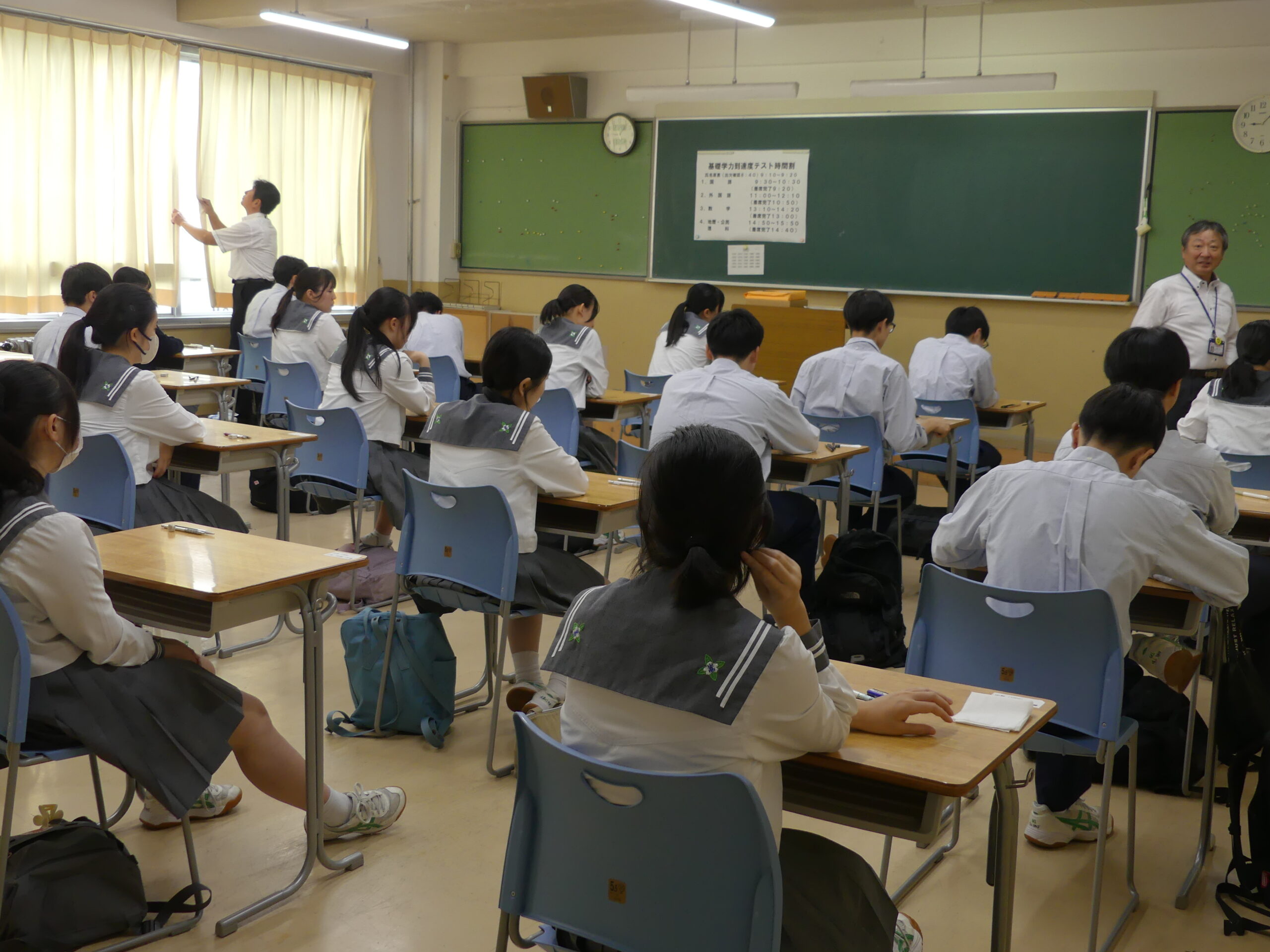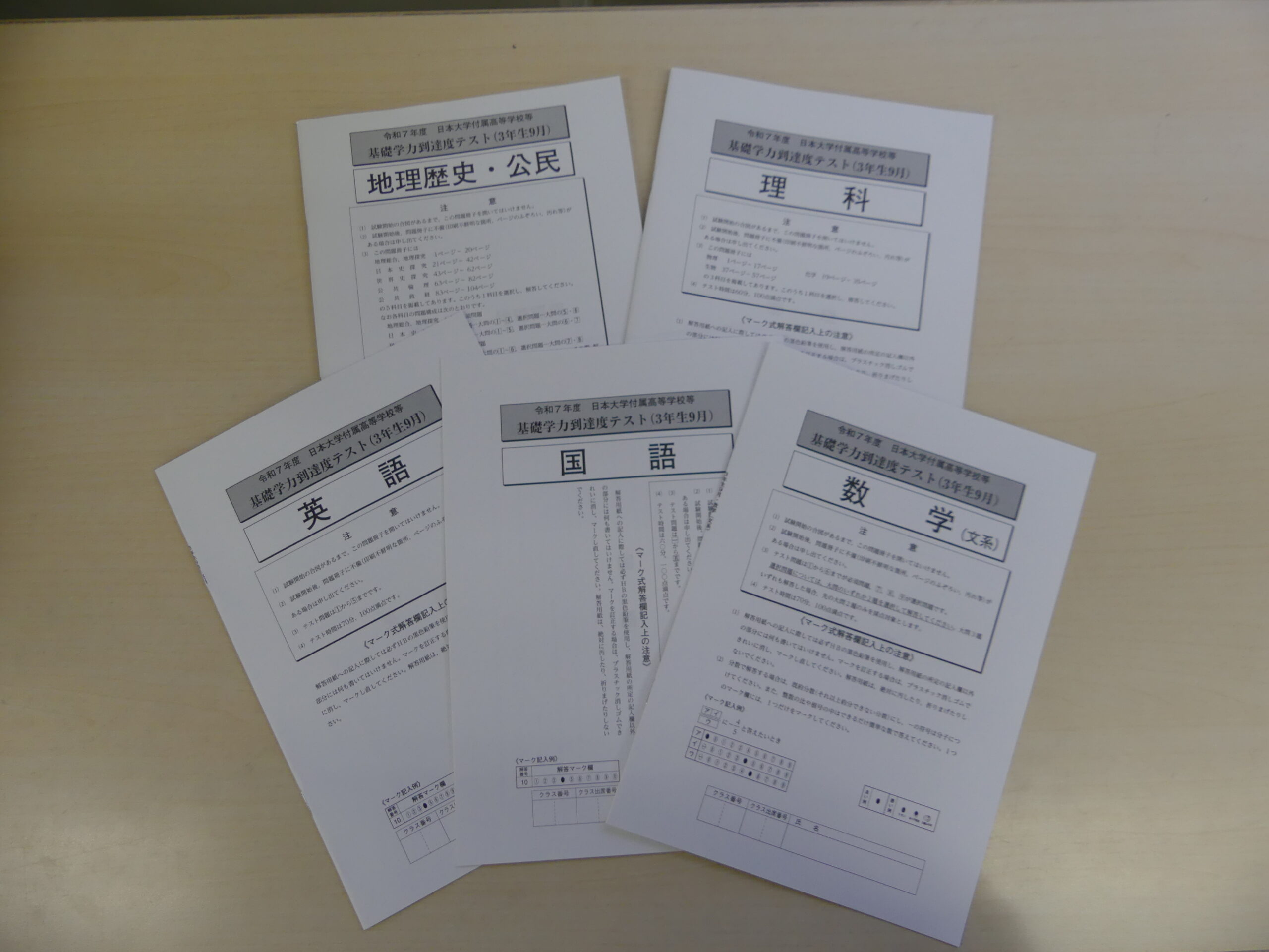 9月25日(木)、3年生を対象とする日本大学付属高等学校等基礎学力到達度テストが実施されました。 「国語」「英語」「数学」に加え、「地理歴史・公民」(文系)「理科」(理系)の各科目で試験が行われました。全国の付属校生が受験する試験であり、日本大学への進学にもつながるものです。3年生の皆さん、お疲れ様でした。 この試験を境に、受験に向けた動きが本格化します。進路目標の実現に向け、受験生たちの一層の努力を期待しています。