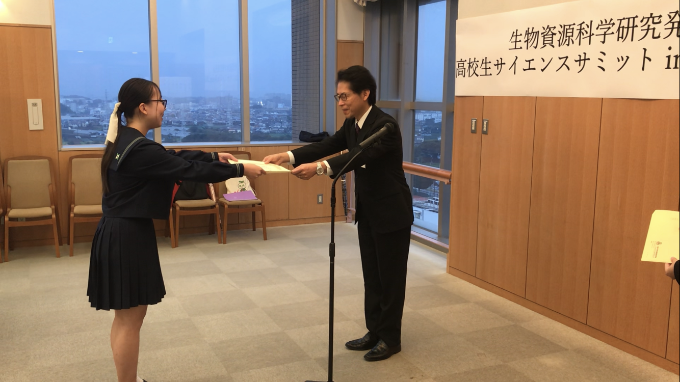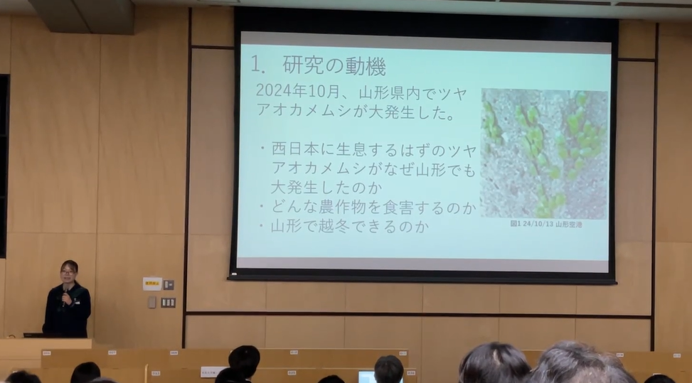 10月25日(土)、生物部は日本大学生物資源科学部で開催された研究発表会、『高校生サイエンスサミット in Shonan 2025』に参加しました。全国各地の付属高校生がそれぞれの研究活動の成果や現状について発表し、活発な質疑応答が行われました。 本校は「2024年秋の山形県でのツヤアオカメムシの大発生と今年の発生状況について」というタイトルで発表し、『学部長特別賞』を受賞することができました。 今回の経験を部に持ち帰り、今後の活動に生かしていきたいと思います。