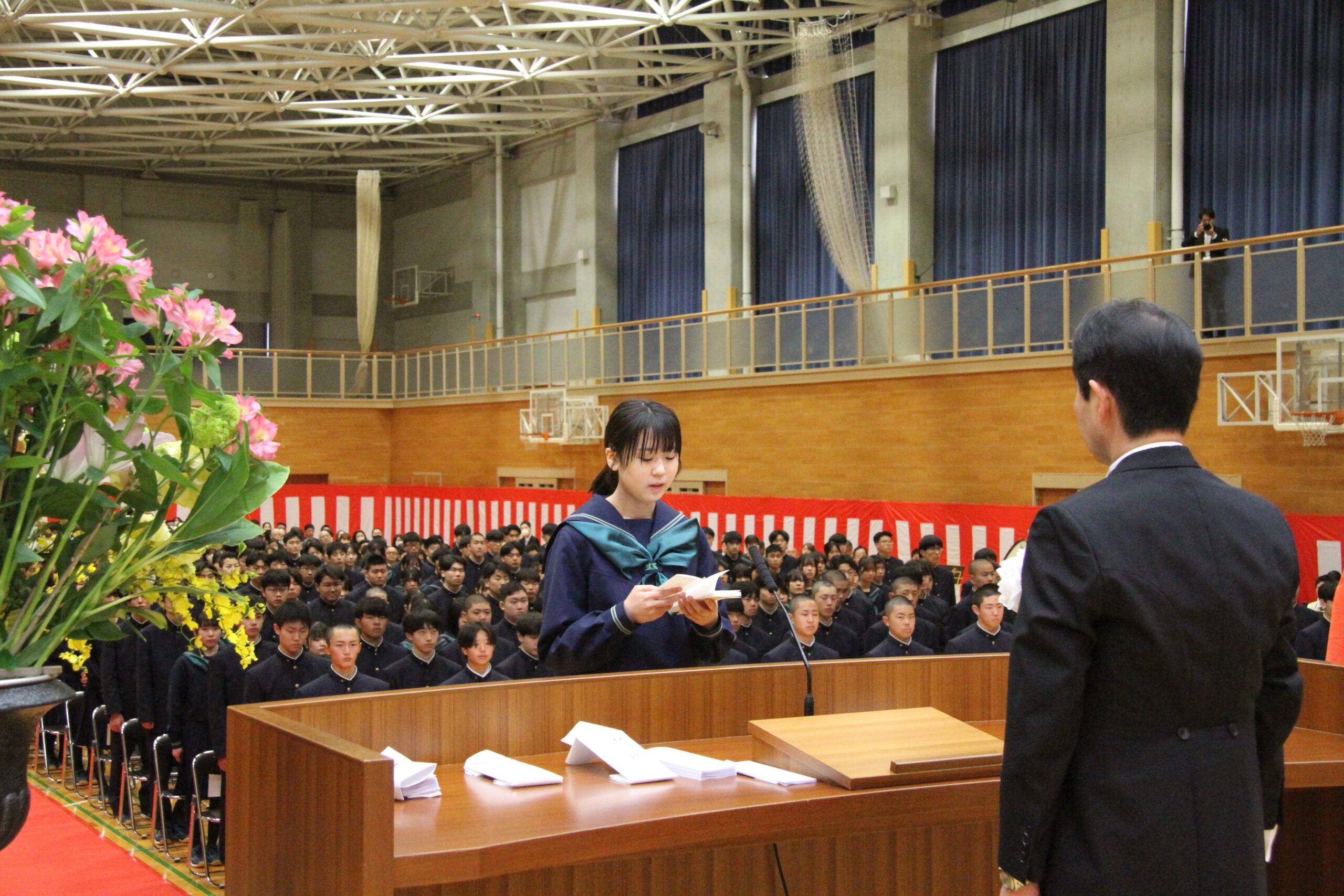 本校の桜が鮮やかに咲く中、新入生306名が高校生活のスタートを切りました。