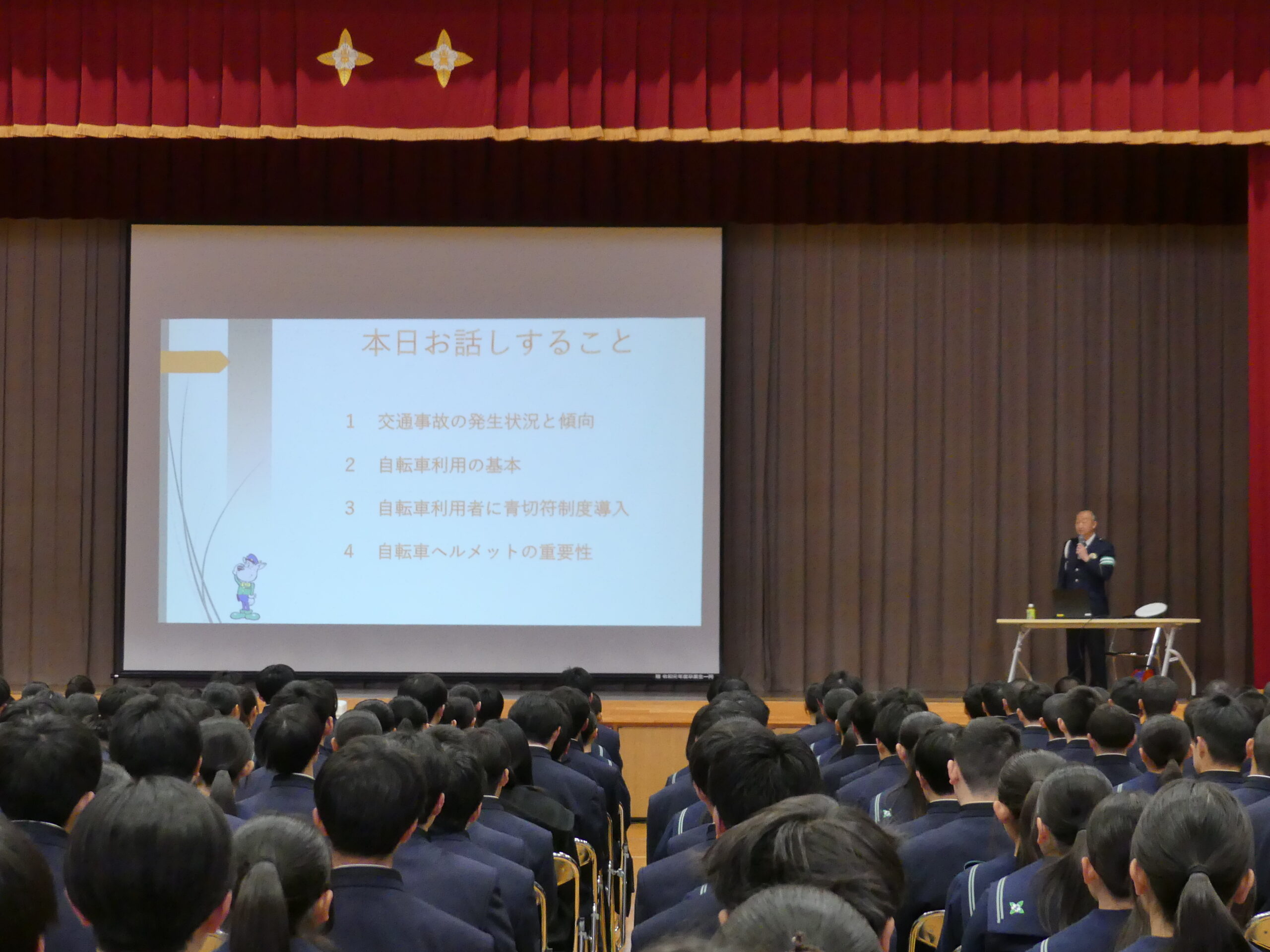 自転車指導講話、校歌・応援歌練習、部活動紹介など